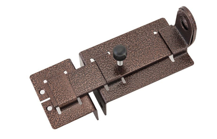 Засов накладной с проушиной, для дополнительной фиксации навесным замком. Предназначен для деревянных и металлических дверей. Материал - сталь, полимерное покрытие. Габариты корпуса - 112х67 мм, 4 крепежных отверстий (2 с торца). Плоский ригель 30х4 мм с вылетом 42 мм. В комплекте ответная планка 48х67 мм.